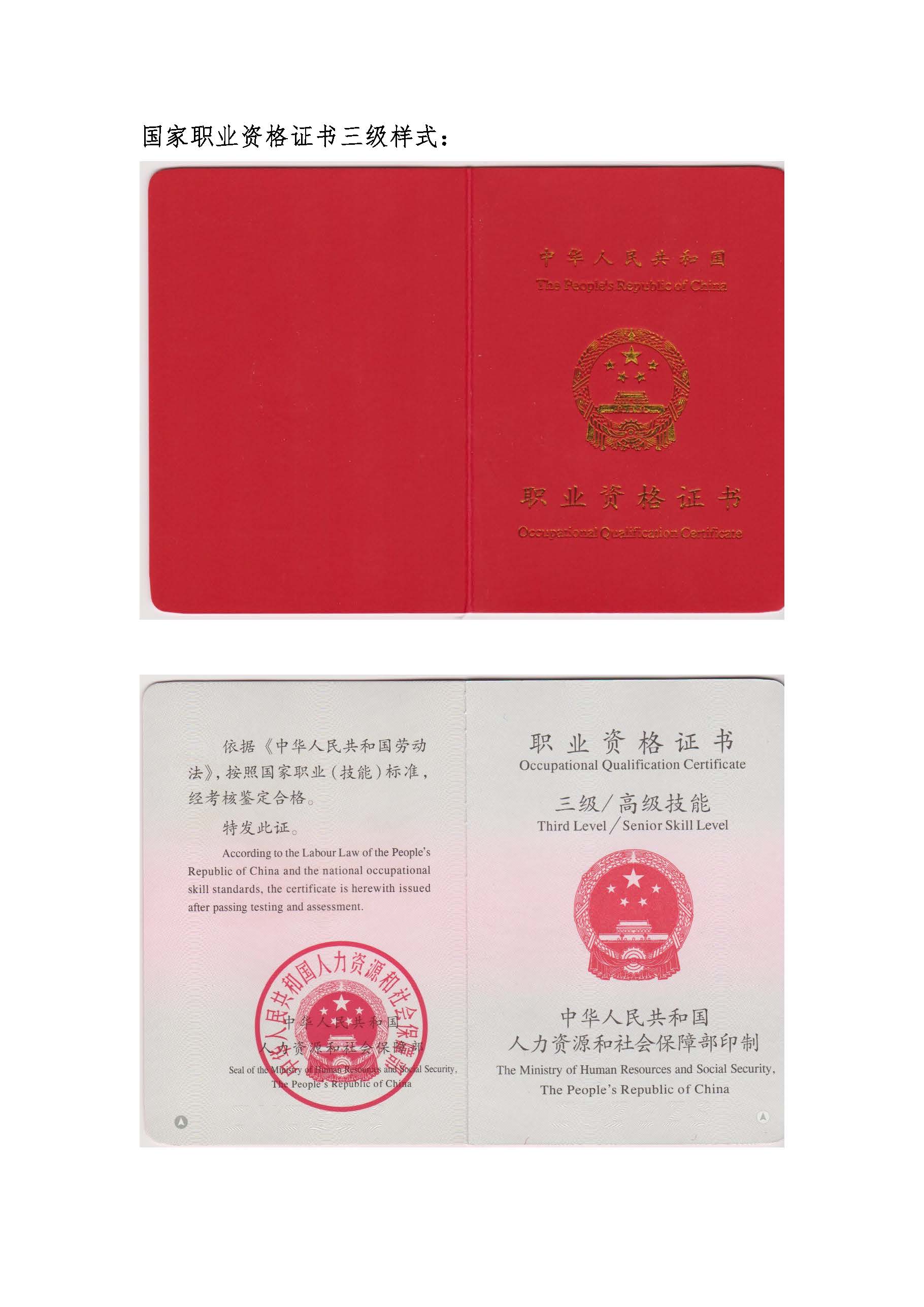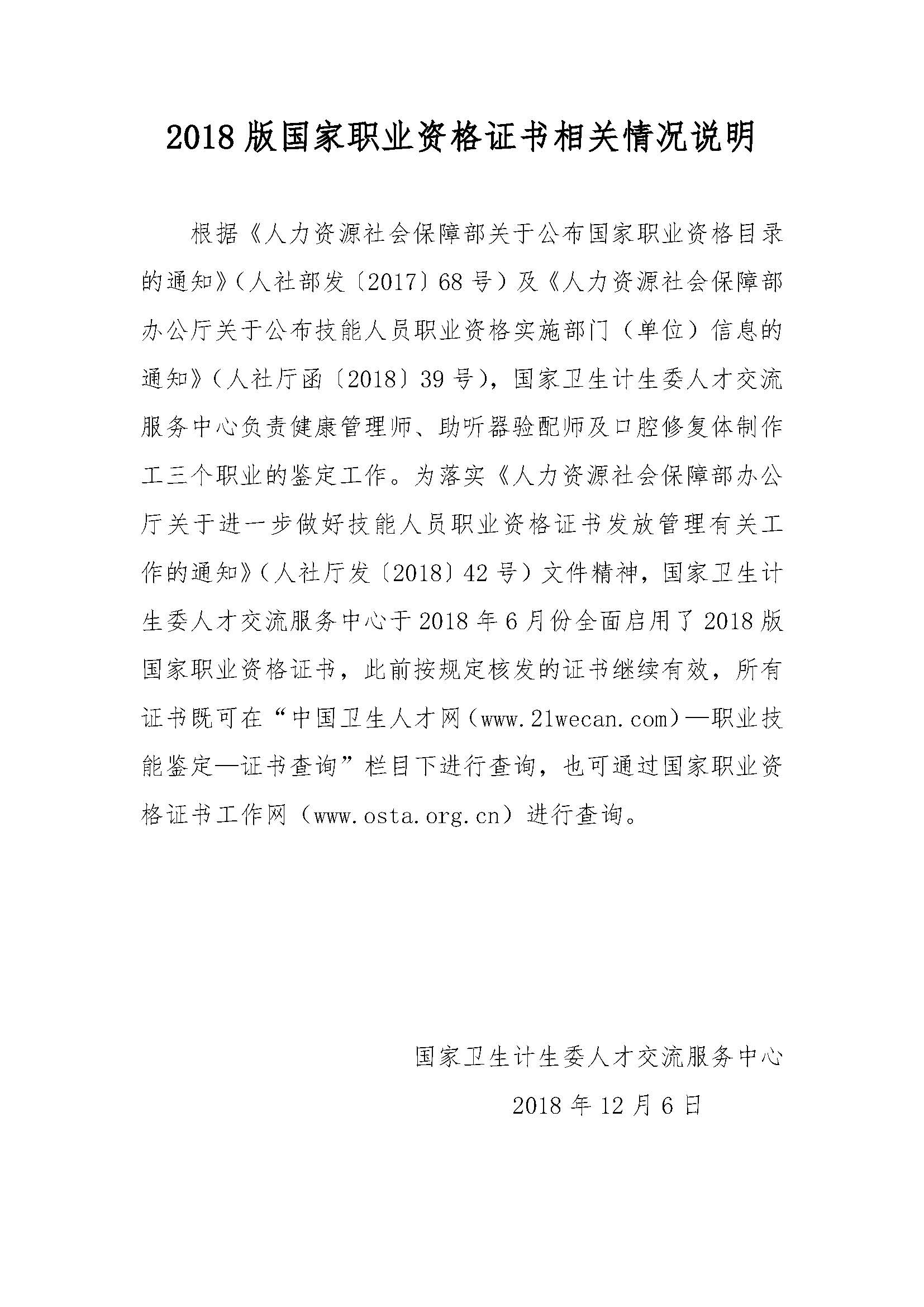2018版国家职业资格证书相关情况说明