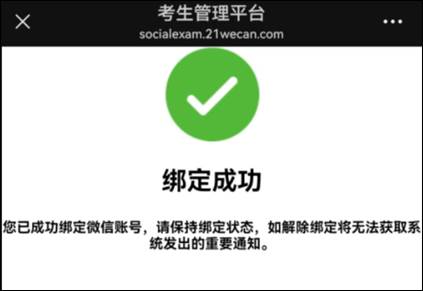 绑定成功后微信会反馈“绑定成功”提示,考生即完成注册和基本信息填报。