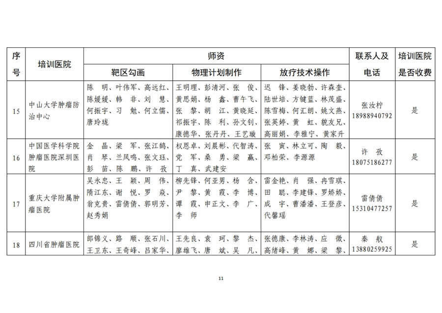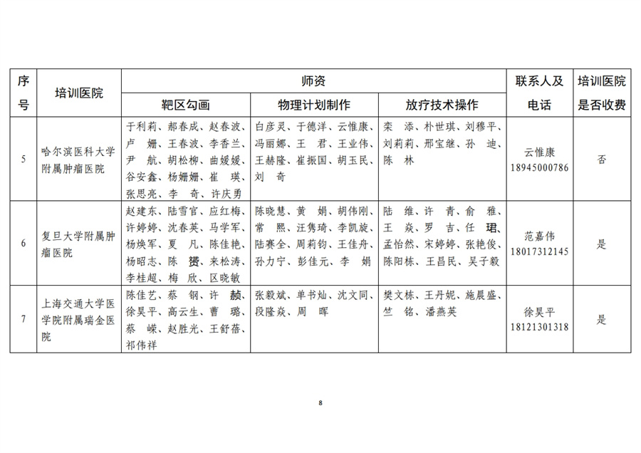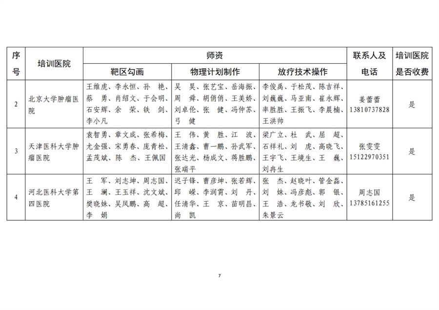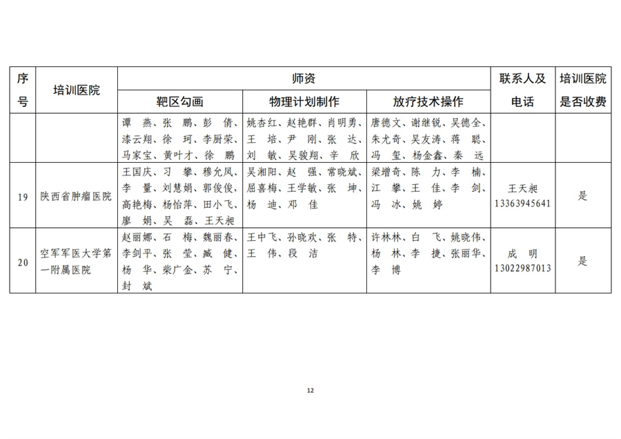 20家肿瘤精准放疗专项技能培训医院,培训医院名单及学员接收计划详见附件。